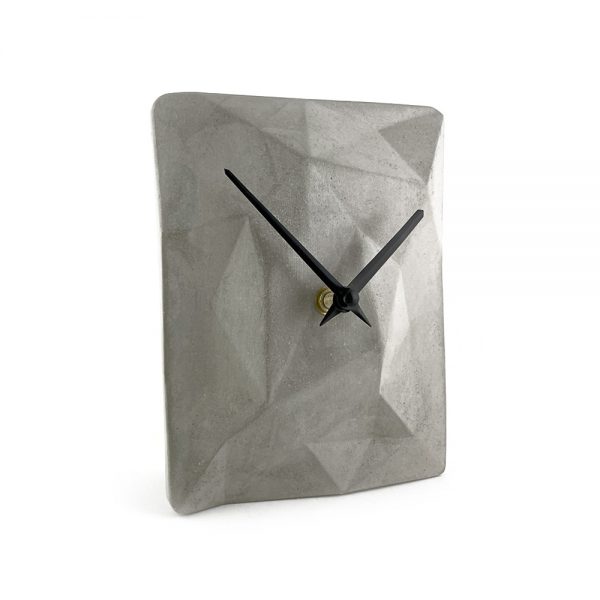 Geometrik Yüzeyli Beton Duvar Saati / Siyah Akrep Yelkovan